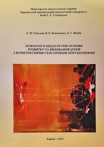 Синьова Є. П. Психолого-педагогічні основи розвитку та виховання дітей з комплексними сенсорними порушеннями: монографія / Є.П. Синьова, В.Є. Коваленко, Л.С. Якуба – Харків: ФОП Бровін О.В., 2025. – 172 с.